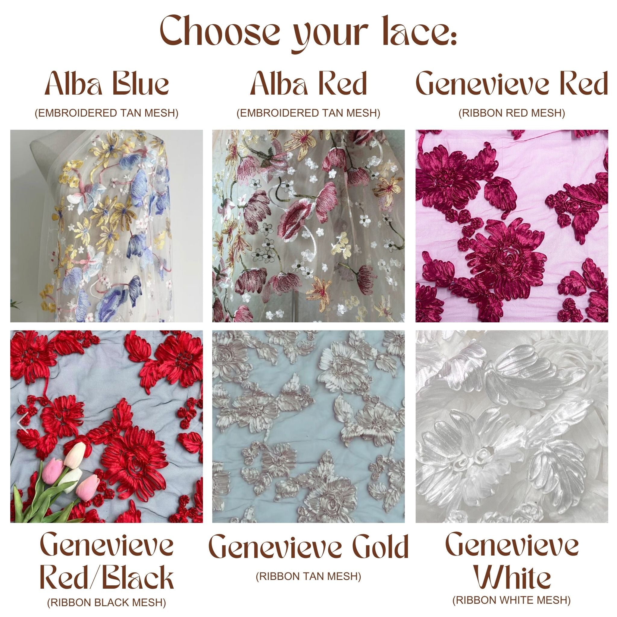 Your choice of lace. Scroll through the photos to view the lace charts.